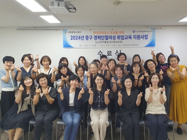 [뉴스서치] 대전 중구는 10일 대전여성인력개발센터에서 경력단절여성 취업교육을 수강한 교육생 25명을 대상으로 수료식을 개최했다고 밝혔다.