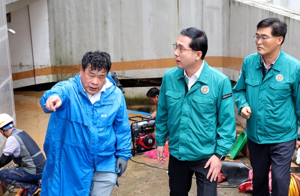 이날 박 청장은 먼저 천동 지하차도를 방문해 물고임 등 배수불량을 점검했고, 이어 외곽지역인 하소동과 만인산 휴게소 인근으로 이동해 토사 유출과 나무 쓰러짐 등을 파악하고 긴급 복구작업을 지시했다.