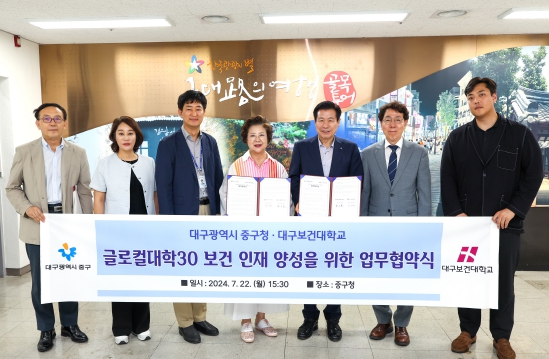 [뉴스서치] 대구 중구는 22일 구청 상황실에서 대구보건대학교와 글로컬대학30 보건 인재 양성을 위한 업무 협약을 체결했다.