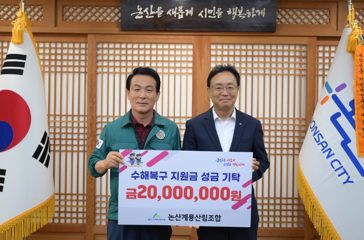[뉴스서치] 논산시는 22일 논산계룡산림조합(조합장 신현호)에서 논산시의 빠른 수해 복구를 기원하며 2천만 원의 수재의연금을 기탁했다고 전했다.