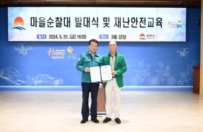 김충섭 김천시장은 "최근 극심한 기후변화로 인해 기존의 상식과 경험을 뛰어넘는 극한 호우 사례가 증가하고 있다"라며 "내가 사는 지역을 가장 잘 알고 있는 마을순찰대원들이 지역민의 생명과 재산을 지키는 안전지킴이로서 지대한 역할을 해 주시길 바란다"라고 당부했다.