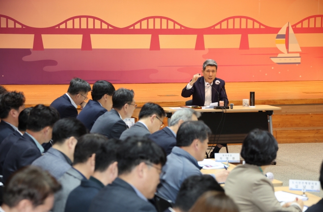 ▲ 이강덕 포항시장이 4월 확대 간부회의를 4일 주재하며 일자리와 정주여건 혁신을 통해 선진 도시로 도약에 만전을 기울여 줄 것을 당부했다.