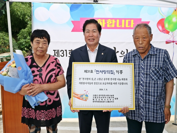 [뉴스서치] 고흥군은 지난 9일 두원면 동신마을에서 공영민 군수를 비롯한 고흥군의회 의장, 군의원, 기관단체장, 지역주민 등 50여 명이 참석한 가운데 ‘제31호 천사랑의 집’ 기증식을 가졌다.
