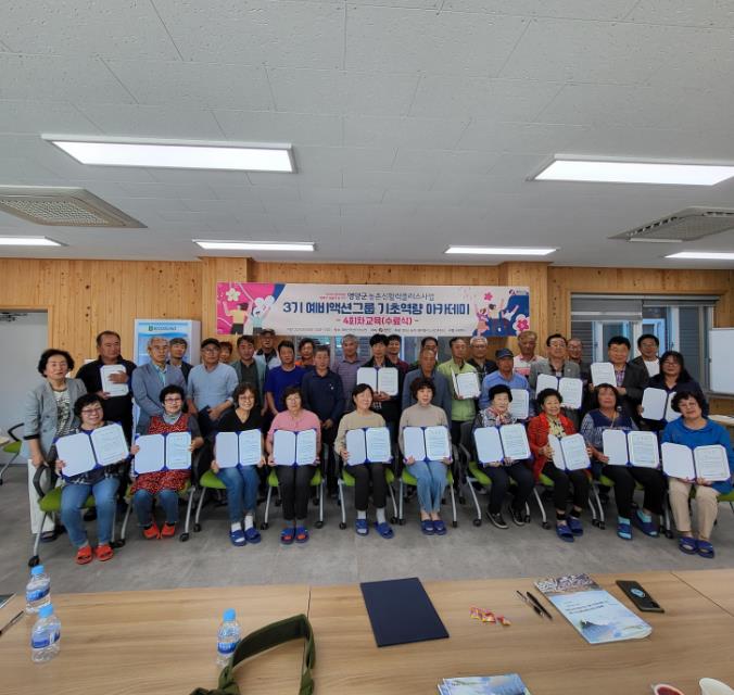이번 제3기 예비액션그룹 기초역량 아카데미 과정은 지난해 1, 2기 액션그룹에 참여하지 못한 영양군에 주소를 둔 지역민 및 단체(법인)를 대상으로 하여, 5월 16일 1회차 교육을 시작으로 예천, 문경 농촌체험휴양마을 성공사례 견학까지 총 4회에 걸쳐 진행하였으며 37명 신청자 중 수료 요건을 충족한 31명에게 수료증을 전달했다.