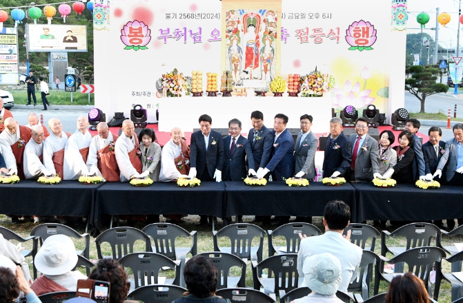 이날 점등식은 대한불교조계종 군위불교사암연합회 주관으로 김진열 군수, 강대식 국회의원, 박수현 군의회 의장, 군위불교사암연합회장 호암 스님, 은해사 교구장 도광 덕조 스님을 비롯한 연합회 회원 사찰의 스님들과 군의원, 각 기관단체장 등이 참석했다.