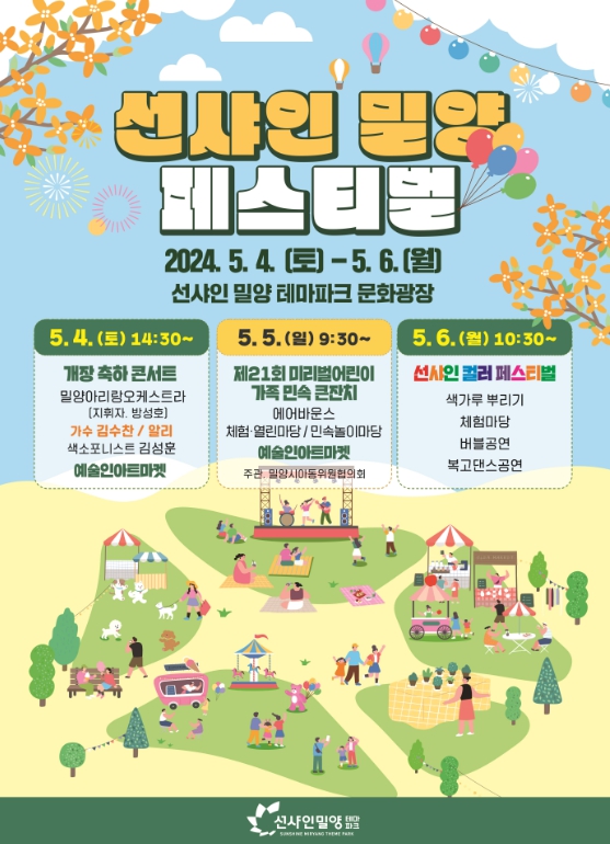안병구 밀양시장은“5월 첫 연휴에 시민과 관광객들 모두 즐길 수 있는 흥겨운 공연과 다양한 체험 프로그램을 준비했으니, 많이 오셔서 힐링과 즐거움을 만끽하시길 바란다”고 전했다.