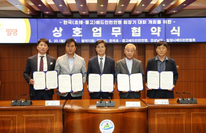 ▲ 밀양시, 초·중고 배드민턴대회 개최를 위한 업무협약 체결 |