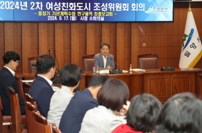 여성친화도시 조성위원과 관련 부서장 등 20여 명이 참석한 이날 회의에서 밀양시 여성친화도시 조성 중장기 기본계획 수립 연구 용역 최종보고회’가 함께 진행됐다. 또한‘모두를 품는 미래, 여성친화도시 밀양’이라는 비전과 △모두가 누리는 성평등 도시 △모두가 일하는 성장 도시 △모두가 만드는 안전 도시 △모두가 보듬는 돌봄 도시 △모두가 소통하는 참여 도시라는 5대 추진 전략이 제시됐다.