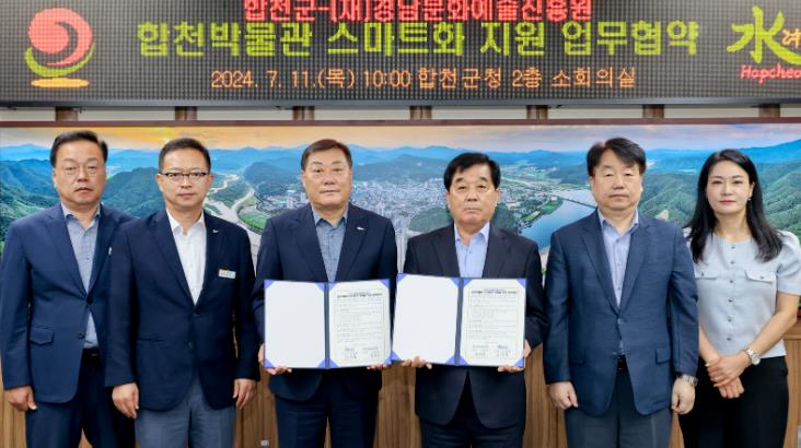 [뉴스서치] 합천군은 지난 11일 오전 10시 합천군청 소회의실에서 경남문화예술진흥원과 합천박물관 스마트화 지원을 위한 업무협약을 체결하고, 경남 지역특화 콘텐츠 개발지원사업을 통한 스마트 합천박물관 조성에 본격 착수했다고 밝혔다.