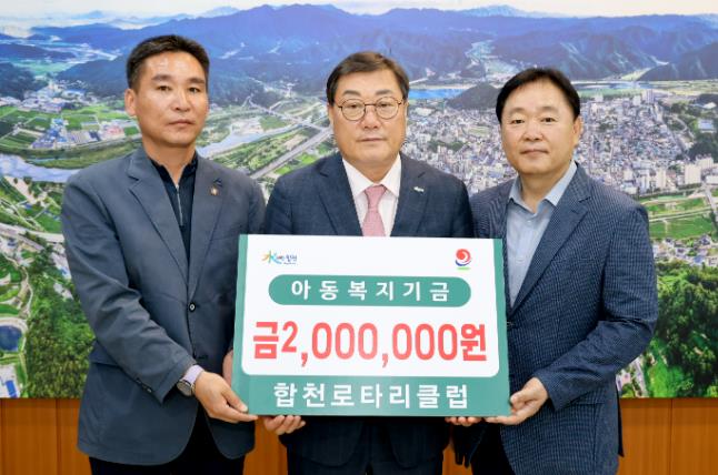 [뉴스서치] 합천로타리클럽은 21일 합천군청을 방문해 아동복지기금에 2백만원을 기탁했다.