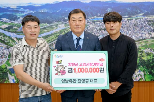 ▲ 합천군 영남유압 전영규 대표, 합천 위해 고향사랑기부금 쾌척 |