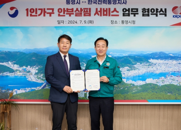 [뉴스서치] 통영시와 한국전력공사는 지난 9일 고독사 예방 및 사회안전망 강화를 위한‘1인가구 안부살핌서비스’운영에 관한 업무협약을 체결했다.