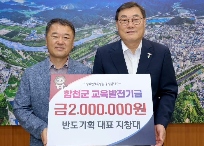 ▲ 반도기획 지창대 대표, 합천군에 교육발전기금 200만원 기탁 |