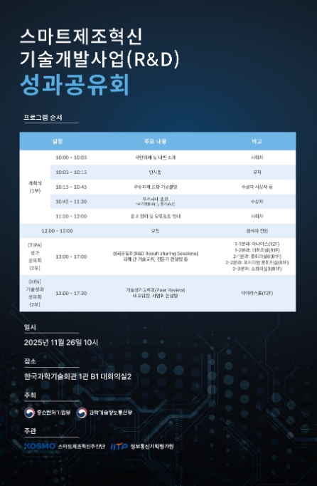 | ▲ 스마트제조혁신 기술개발 사업 성과공유회 개최계획(안) |