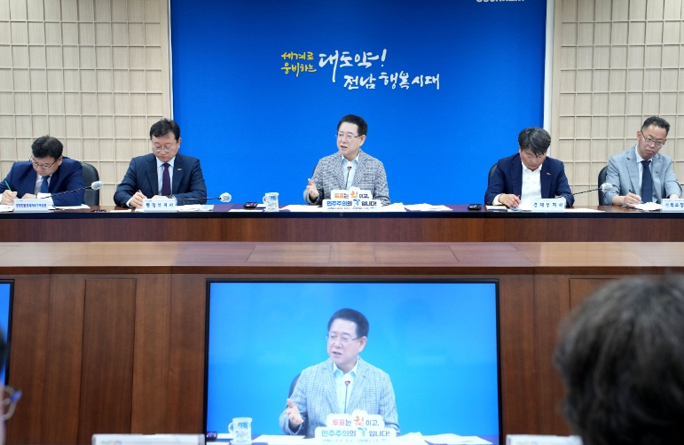 최근 도정 성과에 대해 고흥 우주발사체 시험인프라 구축, 분산에너지특구 최종 후보 선정, 지역활력타운 공모 2곳 선정, 기후위기대응 등 국가연구개발공모 140억 확보, 매니페스토 공약이행 평가 3년 연속 최우수 등을 일일이 열거한 후 “특히 공약 이행률이 타 시·도 평균보다 12.38%p 높은 64%를 기록한 것은 굉장히 높은 것이다.