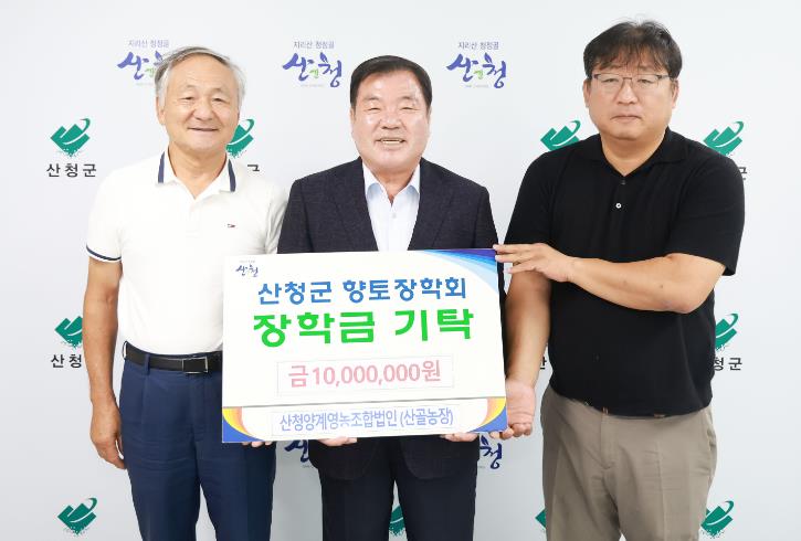 ▲ 산청 산골농장, 향토장학금 전달 산청군향토장학회에 1000만원 기탁 |