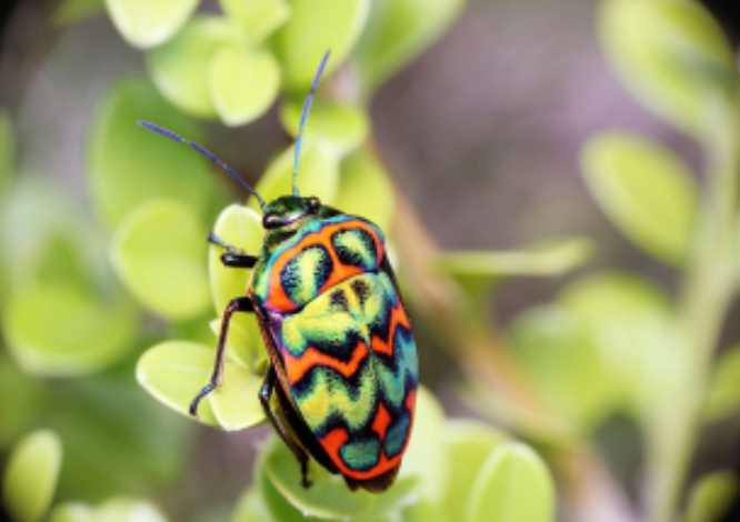 한편, 큰광대노린재는 노린재목 광대노린재과의 곤충으로 몸 전체가 광택이 있는 금녹색을 띠며 붉은 줄무늬가 있다. 다른 곤충으로부터 자신을 지키기 위해 사과와 계피를 섞은 듯한 특별한 향을 풍긴다.