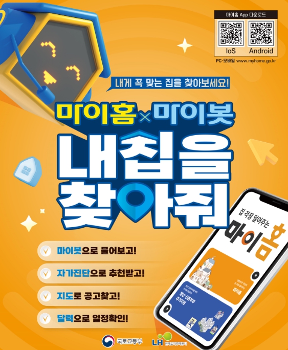 국토교통부는 3월 29일부터 이용자 편의 향상을 위한 서비스를 출시한다.‘마이홈포털’에 상담 챗봇 ‘마이봇’을 도입하고, 공공주택 모집공고 안내 기능도 강화한다.