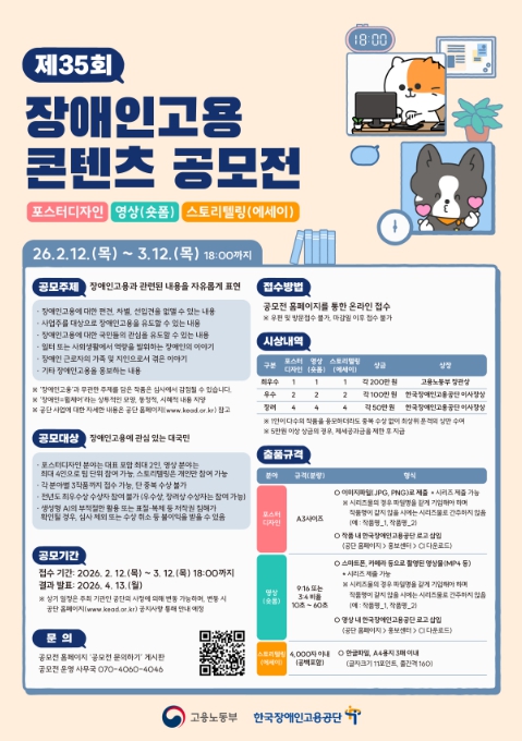 [뉴스서치] 고용노동부와 한국장애인고용공단이 '2026년 제35회 장애인고용 콘텐츠 공모전'을 개최한다.