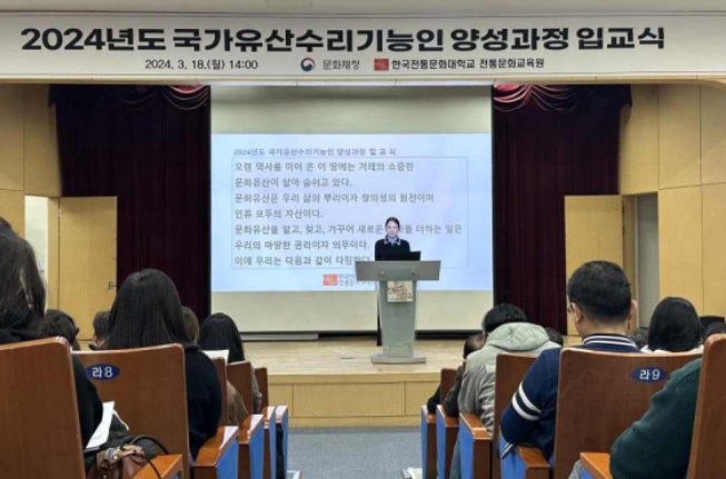 [뉴스서치] 국가유산청 한국전통문화대학교 전통문화교육원은 3월 10일 오후 2시 전통문화교육원 대강당(충남 부여군)에서 ‘2025년도 국가유산수리기능인 양성과정’의 출발을 알리는 입교식을 개최한다.