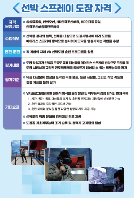 이번 선포식에서는 조선사의 선박도장자격을 제1호 사업주자격으로 인정하기 위한 협약식도 함께 열렸다. 선박도장 직무는 비용‧안전‧환경 문제로 기존에는 실제 현장에서 훈련하는 데 어려움이 많았다. 이를 해소하기 위해 조선업계는 2년 전부터 가상현실(VR) 기술을 활용한 프로그램을 도입하여 근로자들이 안전하게 훈련한 후 빠르게 현장에 투입될 수 있도록 개선했다. 조선사들은 이 훈련과정을 체계적으로 평가하고 자격증을 부여하는 기준을 만들고 있으며, 정부 인정을 통해 자격이 업계 전반에서 통용되도록 노력하고 있다.