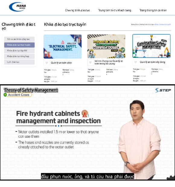 ▲ 한국기술교육대학교 스마트훈련직업플랫폼 STEP에서 제공하는 하나마이크론 베트남 현지 근로자 교육과정 예시 화면 |