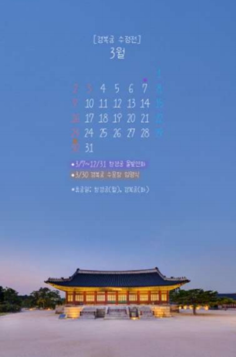 ▲ 3월 궁능유산 휴대전화 배경화면(경복궁 수정전) |