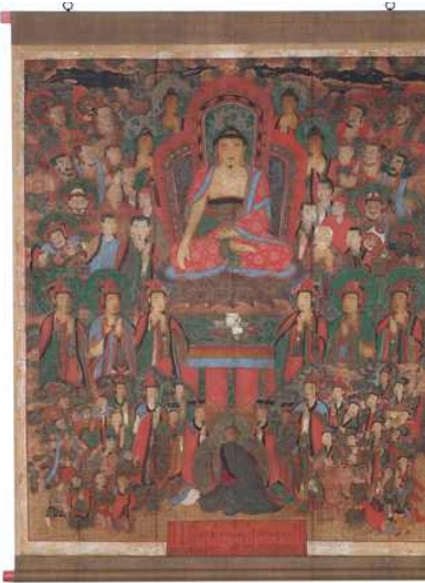 2003년 보물로 지정된 후, 20여 년 만에 국보로 승격된 '순천 송광사 영산회상도 및 팔상도'는 송광사 영산전에 봉안하기 위해 일괄로 제작한 불화로, 영산회상도 1폭과 팔상도 8폭으로 구성되어 있다. 이 작품은 영산회상도를 중심으로 팔상도의 각 폭이 통일된 필선과 색채를 유지하고 있으며, 팔상의 인물들을 섬세한 필치로 묘사한 점, 전각 및 소나무 등을 이용해 사건에 따른 시공간의 전환을 자연스럽게 처리했다는 점 등에서 화면 구성의 다채로움과 표현의 풍부함을 엿볼 수 있다.