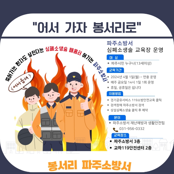 [뉴스서치] 파주소방서는 시민의 심폐소생술 응급처치 능력 향상을 위해 ‘상설 심폐소생술 교육장’을 운영한다고 15일 밝혔다.