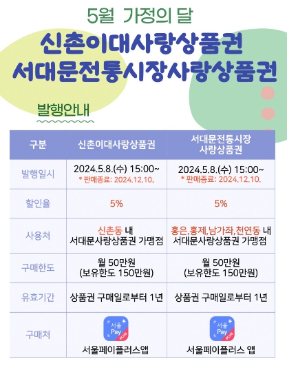 서대문구, 5월 가정의 달 자체 특별상품권 발행