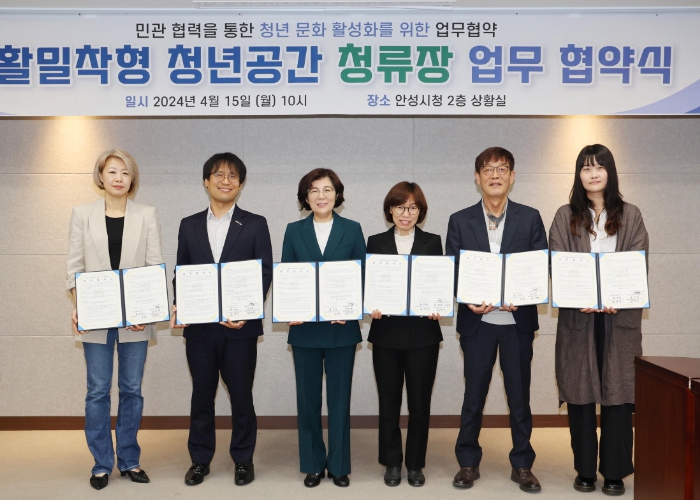 [뉴스서치] 안성시는 지난 15일 2024년 생활밀착형 청년공간-『청류장』 사업을 추진하는 5개소(무이화실, 공방 에이치, 바오밥목공전문학원, 책읽는 행복 작은도서관, 카페잇다)사업장의 대표가 참석한 가운데 업무협약을 체결했다.