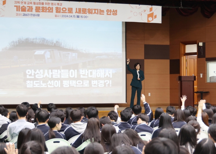 [뉴스서치] 김보라 안성시장은 지난 15일 경기창조고등학교에서 “기술과 문화의 힘으로 새로워지는 안성”이라는 주제로 명사특강을 진행했다.