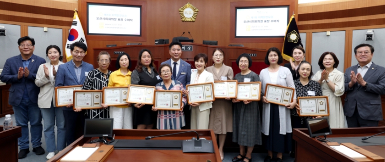 성길용 의장은 “전반기 의장을 마무리하며 지역사회 발전을 위하여 안보이는 곳에서 묵묵히 힘써주시는 시민분들께 축하와 존경을 표할 수 있는 자리를 마련할 수 있어 감사하게 생각하며, 앞으로도 오산시의회는 더욱더 시민분들의 헌신과 노력을 잊지 않고 그 기대에 부응하며 따뜻한 의정을 펼쳐나갈 수 있도록 정진하겠다”고 전했다.
