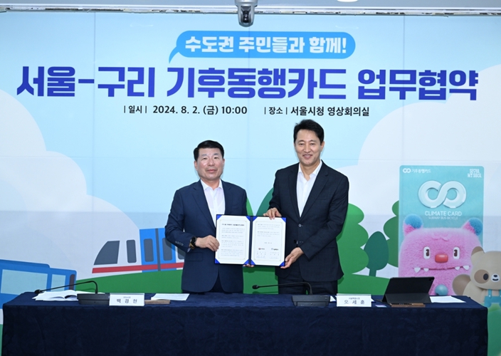 이번 협약으로 지하철 8호선 별내선 구리시 구간 동구릉역, 구리역, 장자호수공원역 등 3개 역사를 이용하는 구리시민들은 기후동행카드의 혜택을 받을 수 있다.