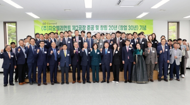 한편 이날 행사는 신현국 회장의 창업 30주년을 기념하는 자리였다. 신회장은 반도체 ALD용 화합물 생산의 세계적인 대표 기업인 유피케미칼의 창업자이기도 하다. 반도체용 특수용기와 센서 및 스퍼터링 타겟 금속을 주요 제품으로 생산하는 지오엘리먼트는 제2공장 준공과 함께 창업 이후 가장 크게 도약할 것으로 기대하고 있는데, 최근에는 반도체용 photo 공정 히터와 생활가전 부품을 제조하는 에타(지오 어플라이언스)를 인수하여 미래성장산업으로 반도체산업 부품제조에 회사의 역량을 집중하고 있다.