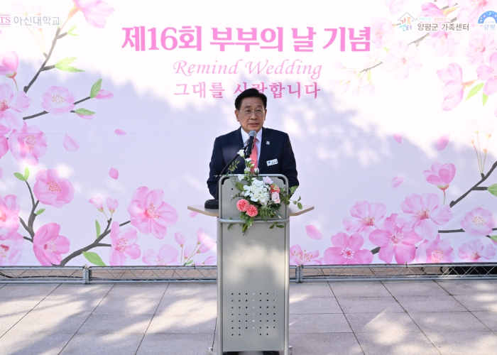 전진선 양평군수는 “비혼과 이혼율 증가로 사회적으로 심각한 문제가 대두되는 가운데, 부부와 가족의 소중함을 되새길 수 있는 시간이 되어 기쁘다”며 “가족의 기능을 강화하고 건강한 가족문화 조성을 위해 다양한 가족 유형에 대응하는 맞춤형 가족정책을 적극 펼쳐나가겠다”고 전했다.