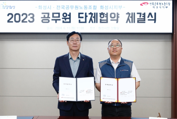이에 정명근 화성시장은 “법과 제도가 허용하는 범위 내에서 노조 측의 요구사항을 적극 수용하고 지원하여 공무원들의 사기진작이 이뤄지고 시민에게 보다 나은 행정서비스로 이어지길 바란다”며 “이번 단체협약을 토대로 노조와 함께 공정과 상식이 통하는 안전한 조직문화를 구축하도록 노력하겠다”고 화답했다.