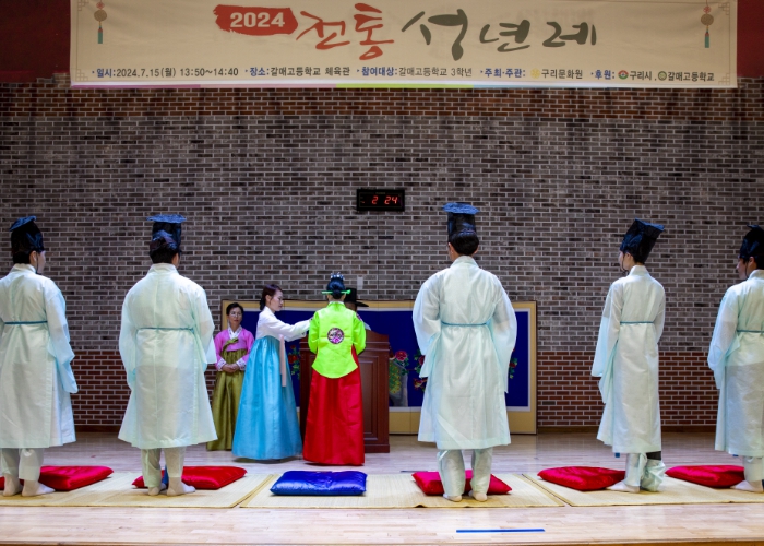 [뉴스서치] 구리시에서는 구리문화원이 7월 15일 갈매고등학교(교장 이홍근) 체육관에서 3학년 학생 200여 명이 참석한 가운데 ‘전통 성년례’를 개최했다고 전했다.
