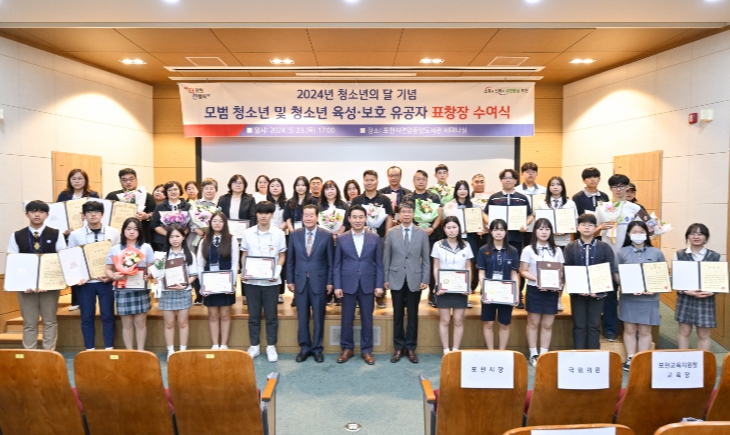 2024년 청소년의 달을 기념해 마련한 이번 수여식에서는 청소년의 건강한 성장 환경을 조성하는 데 기여한 모범 청소년 및 청소년 육성·보호 유공자 45명을 대상으로 포천시장, 포천시의회 의장, 국회의원, 교육장 표창을 수여했다.