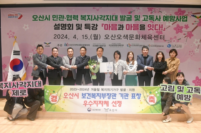 [뉴스서치] 오산시는 2023-2024년 겨울철 복지 위기가구 발굴 지원 우수 지자체 평가에서 보건복지부 장관 표창을 수상했다고 15일 밝혔다.