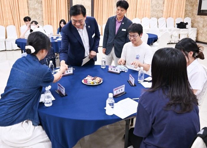 [뉴스서치] 전진선 양평군수가 8월 첫 날, 평생학습센터 4층 온누리실에서 대학생 아르바이트 참여자 34명과 소통 간담회를 가졌다.