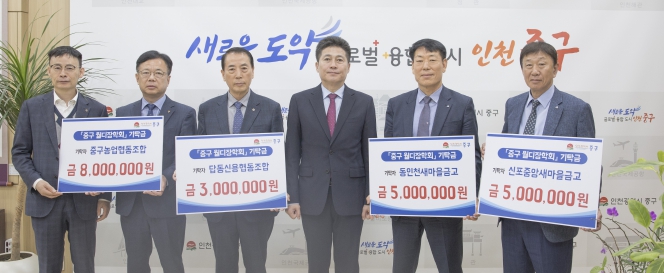한편, 기탁식은 지난 24일 오전 중구청 구청장실에서 김정헌 구청장, 중구농업협동조합 강경원 지점장, 신포중앙새마을금고 김종순 이사장, 동인천새마을금고 김필수 이사장, 답동신용협동조합 이중길 이사장이 참석한 가운데 열렸다.