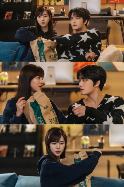 주연과 이군은 쇼파에 나란히 앉아 팝콘을 먹기 시작한다. 이어 주연은 팝콘을 꺼내려다 봉투 속 무심결에 닿은 이군의 손에 놀란 듯 얼음이 되어버린 상황.