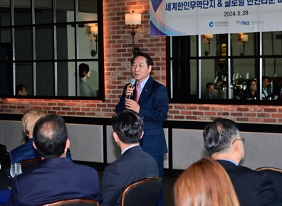 인천경제자유구역청은 미국 출장 중인 유정복 시장이 현지시간 5월 28일 뉴저지에서 재외동포 교민들과 기업인들을 만나 ‘세계한인무역단지 & 글로벌한인문화타운’ 조성 계획 설명회를 개최했다.