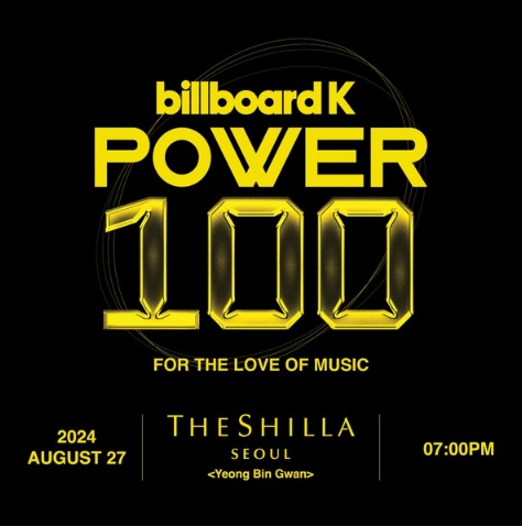 [뉴스서치] 빌보드 코리아가 오는 8월 27일 서울 신라호텔 영빈관에서 'Billboard K POWER 100'을 개최한다.
