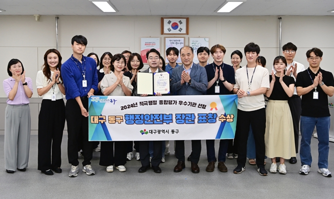 [뉴스서치] 대구 동구청은 전국 243개 지방자치단체를 대상으로 실시한 ‘2024년 지방자치단체 적극행정 종합평가’에서 대구에서 유일하게 행정안전부장관 표창을 수상했다.