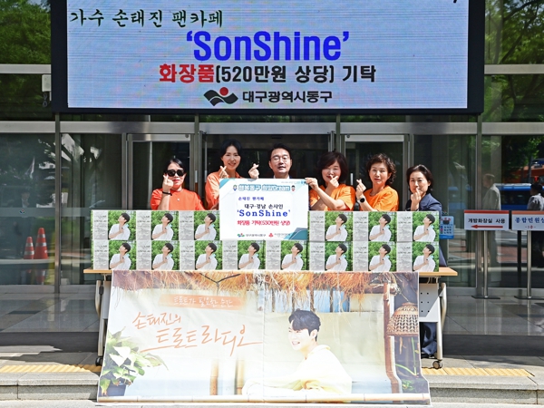 ▲ 가수 손태진 팬클럽, 대구 동구청에 화장품 세트 기탁 |