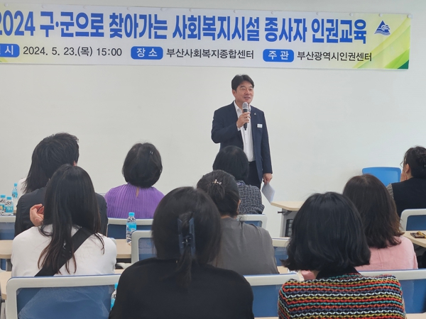 [뉴스서치] 부산 동래구는 지난 23일 부산사회복지종합센터에서 부산광역시인권센터 주관으로 동래구 소재 사회복지시설 29개소 종사자 70명을 대상으로‘2024 구·군으로 찾아가는 사회복지시설 종사자 인권교육’을 실시했다고 밝혔다.