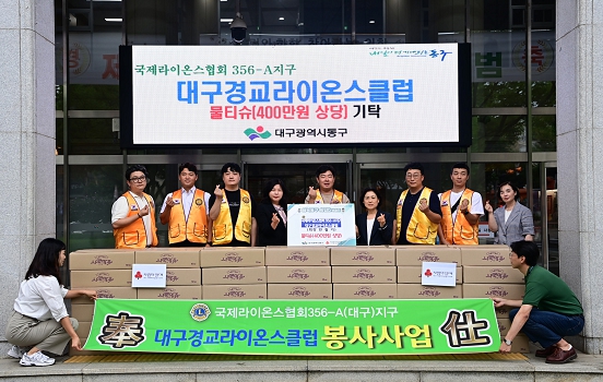윤석준 동구청장은 “소외되는 이웃이 없도록 따뜻한 손길을 전해주신 국제라이온스협회 356-A지구 대구경교라이온스클럽에 감사드린다.”며 “기탁 해주신 물품은 도움이 필요한 곳에 소중히 쓰겠다.”라고 말했다.