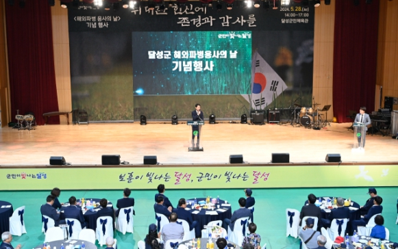 [뉴스서치] 대구 달성군은 5월 28일 달성군민체육관에서 국가유공자와 보훈가족, 기관사회단체장 등 500여 명이 참여한 가운데 ‘달성군 해외파병용사의 날 기념행사’를 개최했다.